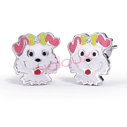 Дитяча колекція серії "KIDS" представлена сережками з укороченим штифтом (голкою) всього 9 мм! Сережки у вигляді собачки, інкрустовані кристалами Swarovski. Підходить для найменших дітей не завдає дискомфорту і не заважає спати. Сережки мають по дві застібки (метал, силікон – на вибір).