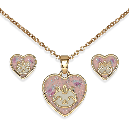 Дитячий комплект включає кольє та сережки у вигляді серця з зображенням єдинорога