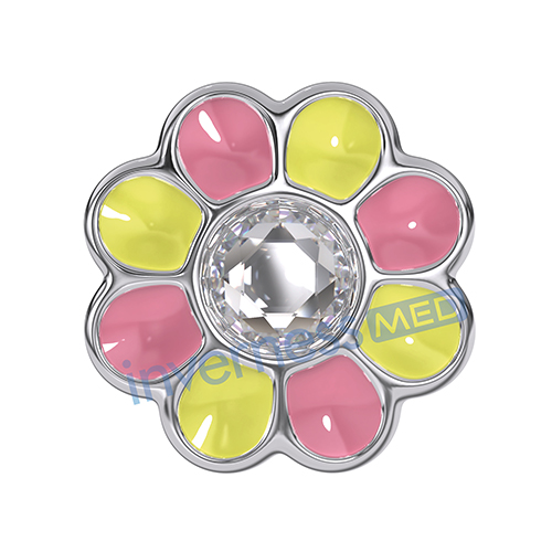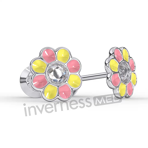 Сережки для проколу вух Inverness K1226c margherita gialla-rosa 6mm з короткою голкою 9mm
