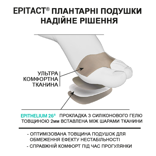 Подвійні захисні подушечки Epitact використовуються для запобіганню та полегшенню болю в передній частині стопи та болю при вальгусній деформації.