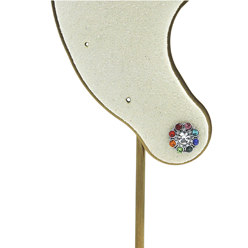 - Сережки сріблястого кольору, інкрустовані різнокольоровими кристалами.