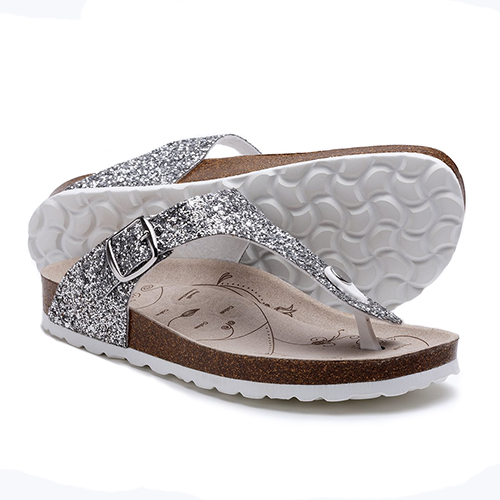 Шльопанці SUECOS Viky Argento Glitter - це жіночі шльопанці сріблястого кольору з блиском. Завдяки цим блискучим вкрапленням, навіть повсякденне взуття виглядає святково. Сандалії виготовлені з натуральної пробки та мікрофібри для запобігання алергії і інфекцій (антибактеріальні). Устілки з подвійною підкладкою. Підошва з етилен вінілацетату. Взуття зручне з ефектом рефлексивності і стимуляції ступнів.